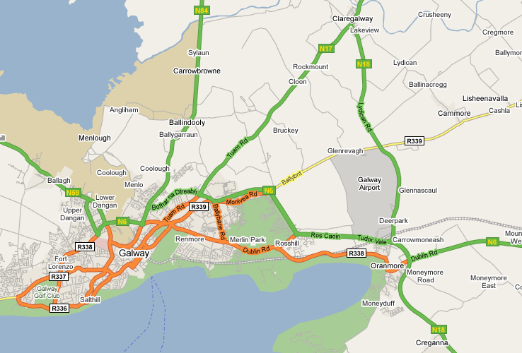 Take the N18 to Clarecastle. In the centre of the village exit the N18 at the "Coach House" by continuing straight (instead of turning right to Ennis). After half a mile take the left at the signpost for Clare Vehicle Testing Centre. Continue for another half mile.